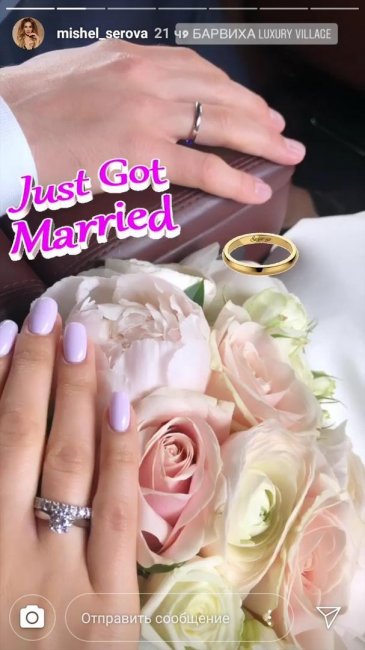 Дочь известного артиста Александра Серова похвасталась в Instagram, что выходит замуж. Свадьбу 26-летняя Мишель сыграла в Барвихе 11 мая. О помолвке девушка сообщила еще в октябре прошлого года. Все это время Мишель Серова скрывает лицо жениха.