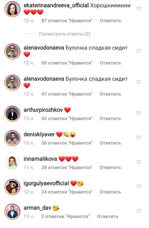 К слову, свежий кадр Кудрявцевой с дочерью на руках прокомментировала ведущая информационной программы «Время» на Первом Екатерина Андреева и экс-участница «Дома-2» Алена Водонаева. Снимок также оценили Инна Маликова, Денис Клявер и Александр Ревва.
