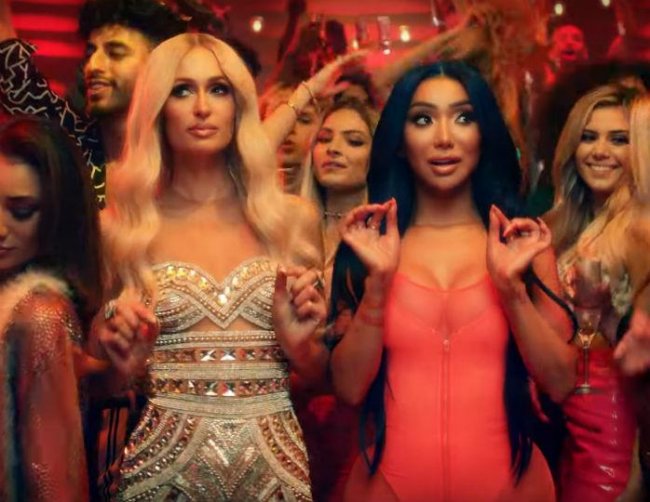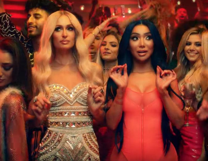 В ролике, опубликованном накануне на YouTube-канале Dimitri Vegas & Like Mike, много танцев и ненормативной лексики. Пэрис и Ким предстают в роскошных нарядах, а одна из строчек припева сингла гласит: «Я не могу перестать глазеть на пятую точку лучшей подруги».