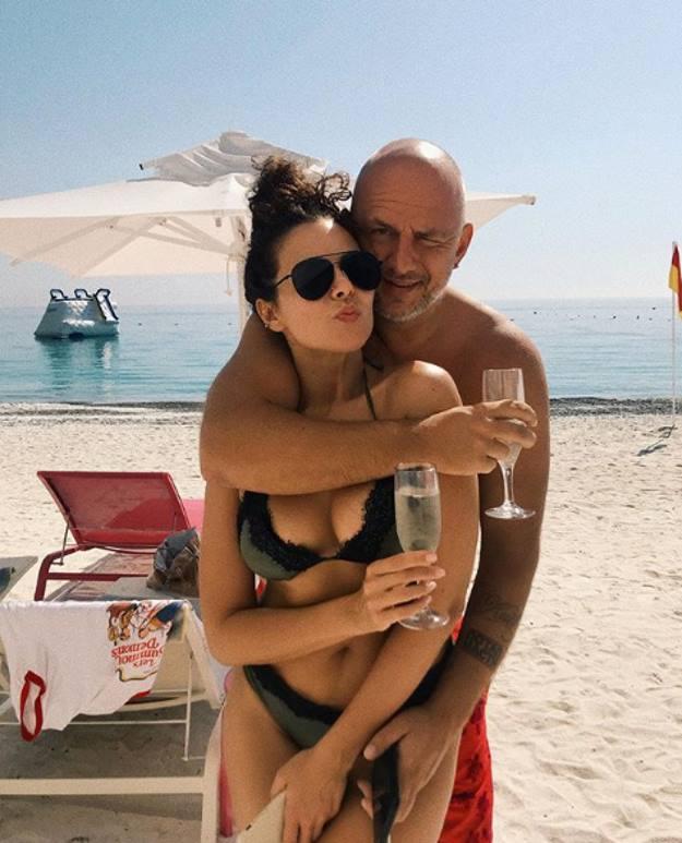 На фото Настя запечатлена в бикини и солнезащитных очках. Рядом с возлюбленной позирует и Потам. Молодожены держат в руках бокалы.