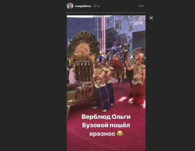 Один из ведущих музыкальной премии «МУЗ-ТВ» юморист Максим Галкин в сторис Instagram опубликовал нарезку из забавных видеозаписей. На кадрах можно увидеть, как сам Галкин ведет церемонию. Он представляет одну из участниц Ольгу Бузову. При этом супруг Аллы Пугачевой не забывает и о верблюдах, с которыми она появилась на церемонии. «Ольга Бузова и ее верблюды», — отмечает телеведущий.