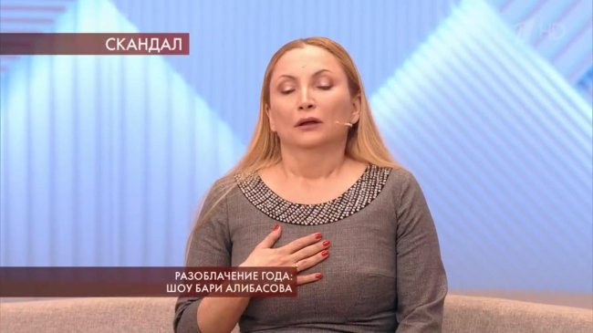Диетолог Алибасова в шоке после того, как продюсер выгнал её из дома. Кадр из программы «Пусть говорят».