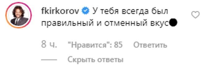 «У тебя всегда был правильный и отменный вкус», — отметил в комментариях под фото певец.