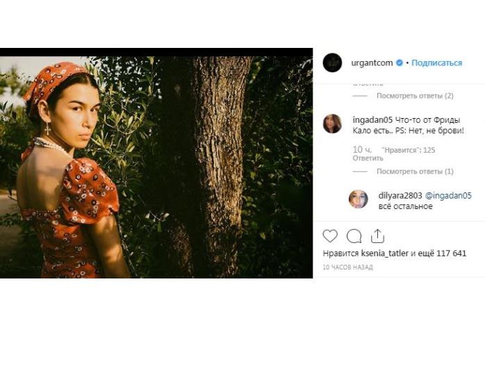 На снимке девушка позирует в ярком красном платье и задумчиво смотрит в камеру. Ее волосы убраны под платок. Образ Эрики напомнил фолловерам Урганта художницу Фриду Кало.