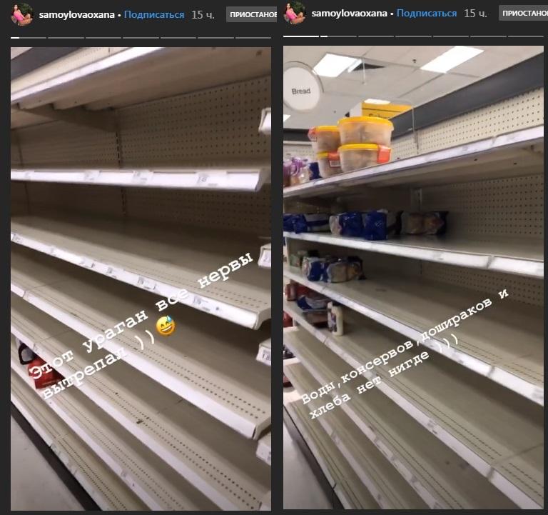 Неизвестно, сколько времени русским туристам придется находиться на острове, поэтому Оксана пошла в местный магазин, чтобы закупиться консервами и водой. Там она сняла в «сториз» практически пустые полки. По словам модели, найти хлеб, растворимую лапшу и воду очень трудно, но она справилась и сделала солидный запас продуктов. Проехавшись по улицам города, Самойлова отметила, что он практически вымер — все сидят по домам и ждут непогоду.