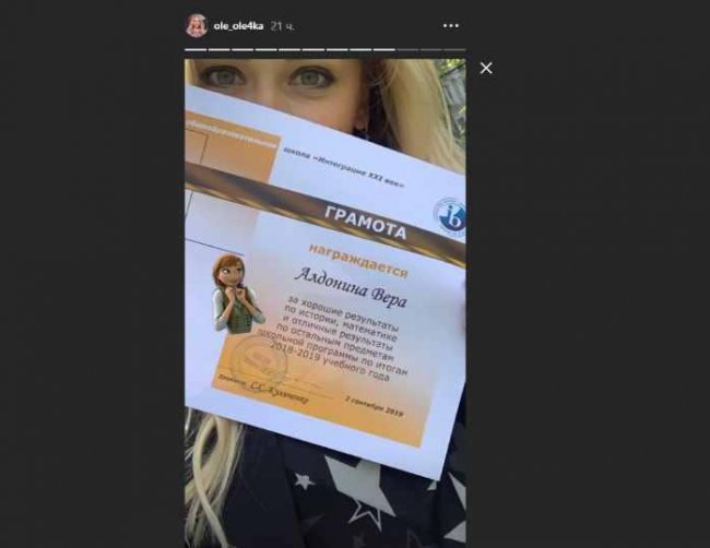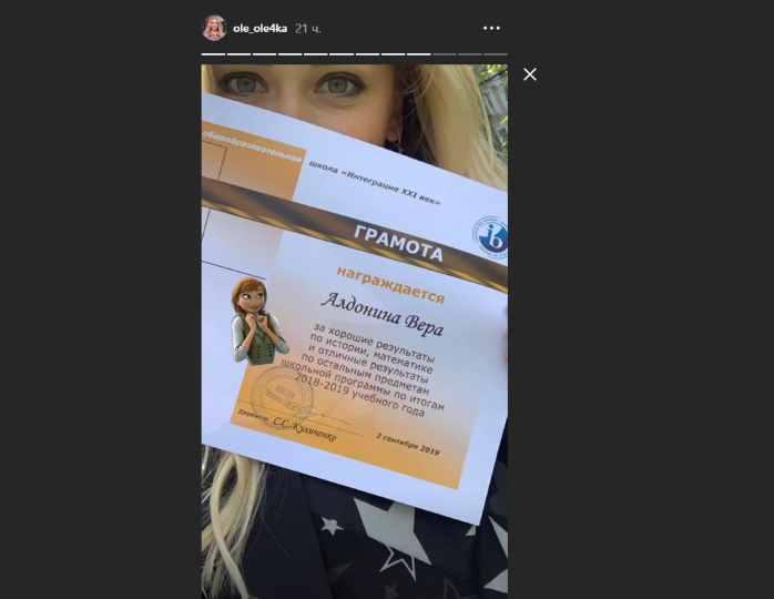Вера Алдонина отличилась в учебе/https://www.instagram.com/ole_ole4ka/