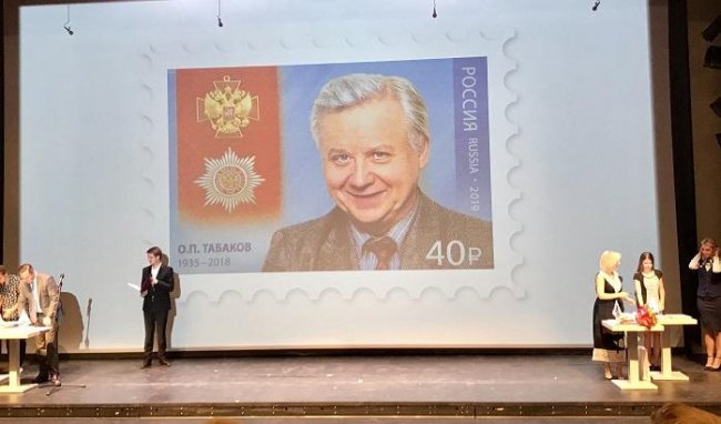 Презентация марки с изображением Олега Табакова. Фото Лики Брагиной