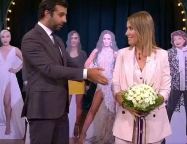 После этого Иван Ургант предложил жениху и невесте продолжить провести еще один ритуал, без которого не обходится сегодня ни одна свадьба. Ведущий предложил Ксении Собчак бросить букет подружкам, в качестве которых выступили манекены незамужних на сегодняшний день звезд.