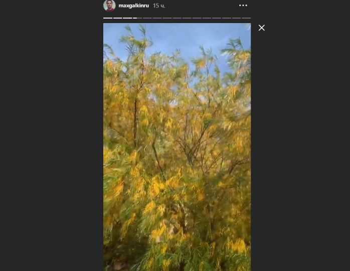 «Вот как сейчас выглядит ивовая роща, которую я посадил. Какая красота, ребята! Так называемая ива Шверина. Немножко похожа на бамбук. Очень красиво желтеет к осени, и вот когда их много, они создают вот такое неповторимое сочетание цвета и света. Короче, здорово. Я доволен результатом. Конечно, они еще будут разрастаться, но уже примерно понятно, какая красота. Чисто юго-восточная Азия», — заявил Максим Галкин.