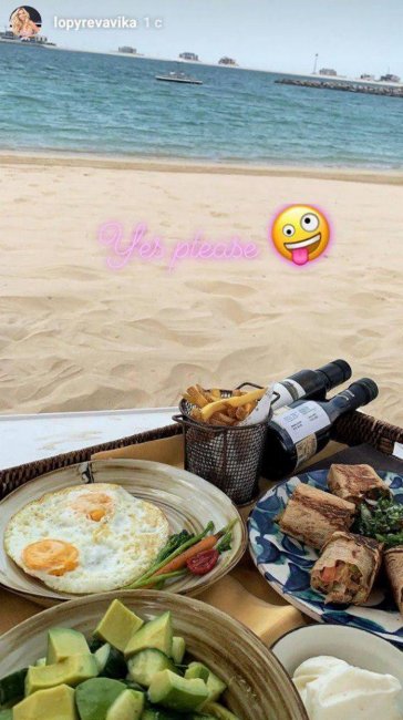 36-летняя Виктория Лопырева и 22-летняя Алена Краснова предпочитают не ограничивать себя в еде на отдыхе. Возлюбленная бизнесмена Игоря Булатова вслед за Анной Хилькевич улетела в Дубай. На личной страничке в Instagram знаменитость показала, что она заказала себе на завтрак: Вика выбрала яичницу, овощи с гриля, рулетики с начинкой, а в качестве легкой закуски модель попросила принести ей картофель фри.