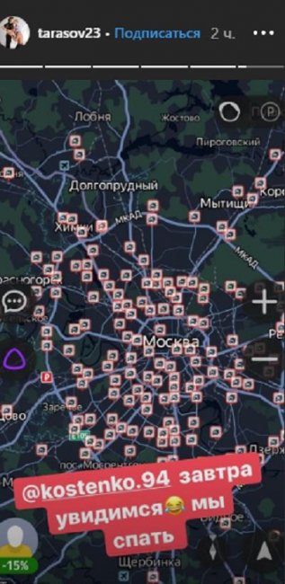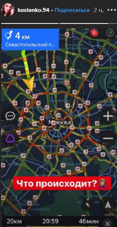 Например, футболист Дмитрий Тарасов никак не может дождаться супругу домой. Анастасия Костенко возмутилась в stories, опубликовав карту московских дорог, изрезанную красными линиями.