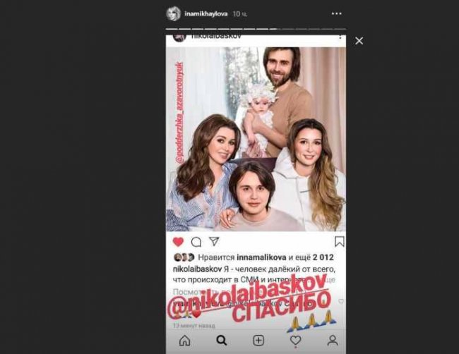 Кроме супруга Инны Михайловой, который одним из первых попросил всех подписаться на аккаунт, в списке еще несколько звездных имен. Анастасию Заворотнюк поддержали певицы Зара, Наташа Королева, Анна Семенович, певцы Николай Басков и Эмин.