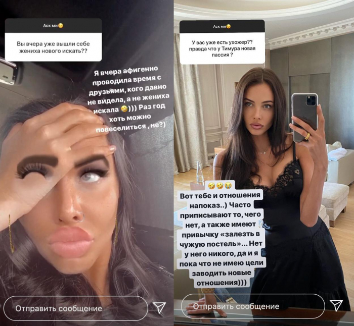 Она также прокомментировала слухи о новых отношениях Тимати. Анастасия заверила, что рэпер еще свободен, как и она. «Вот тебе и отношения напоказ.. Часто приписывают то, чего нет, а также имеют привычку „залезть в чужую постель“… Нет у него никого, да и я пока что не имею цели заводить новые отношения», — высказалась модель.