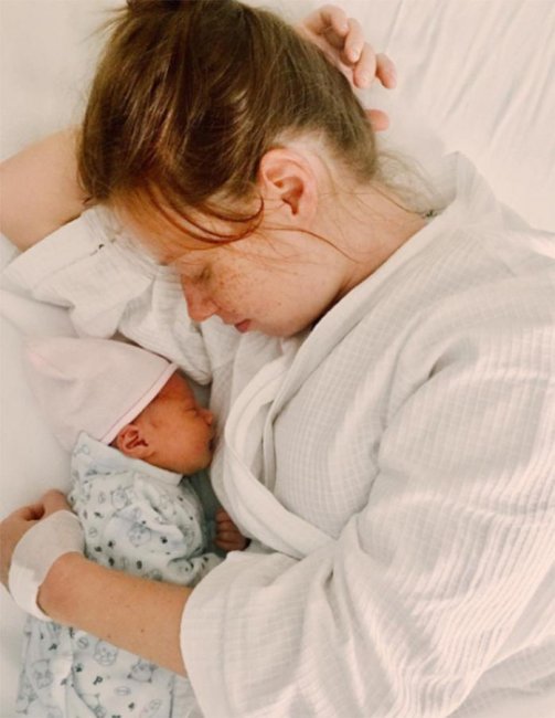«Эта фотография сделана уже в моеи палате. Я никогда не забуду, как она впервые посмотрела на меня. Это был настолько взрослыи, осмысленныи и глубокии взгляд!» — поделилась звезда.