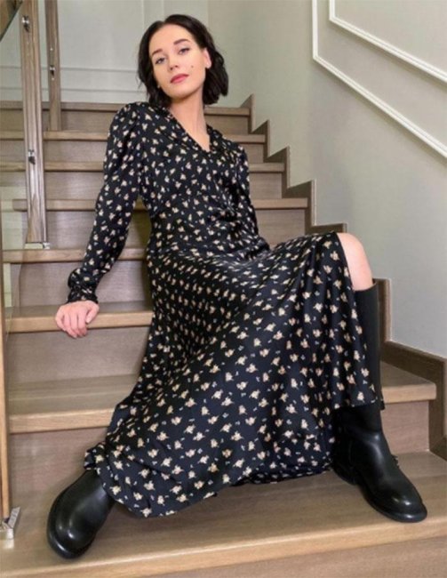 Многие подписчики предсказуемо сконцентрировались не на тексте публикации, а на снимке актрисы. Они признаются, что хотели бы видеть Кристину Асмус в несколько иных нарядах, ведь она еще так молода. Кристина Асмус позирует в черном платье и сапогах-трубах. Фото: instagram.com/asmuskristina/ С ними согласна и модный эксперт Teleprogramma.pro Ольга Трофимова. Она также сочла образ Кристины Асмус не очень молодежным и дала несколько советом о том, как «осовременить» лук. «Кристина Асмус поработала с цветом волос и превратилась в жгучую брюнетку, в связи с этим типаж и подача себя немного изменились, — отметила Ольга Трофимова в беседе с Teleprogramma.pro. — Платье с цветочным принтом на черном поле неплохо сочетается с новым образом актрисы, а вот обувь здесь должна быть другой. Хорошо будут смотреться ботинки на достаточно высокой подошве, либо казаки, либо полуботинки на скошенном каблуке с зауженным носом. Если еще дополнить курткой-косухой, то получится весьма эффектный образ. А так — мы видим спокойный, умеренный образ. Это точно не молодежный стиль, а я бы сказала, скромный». Справка Teleprogramma.pro: Ольга Трофимова — профессиональный имидж-стилист, персональный стилист, шопер, преподаватель учебного центра «Бьюти Поинт», опыт работы — свыше 10 лет. Ольга Трофимова. Фото: личный архив Смотрите также: