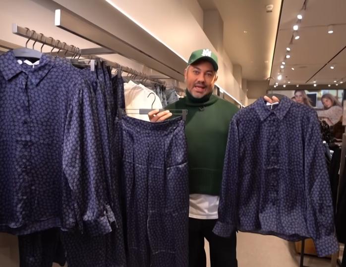 Александр Рогов на шоу СТС «Рогов в деле», подбирая гардероб для очередной героини проекта, остановился в магазине возле шелковых свободных костюмов. Комплекты состояли из рубах на пуговицах и комфортных брюк.