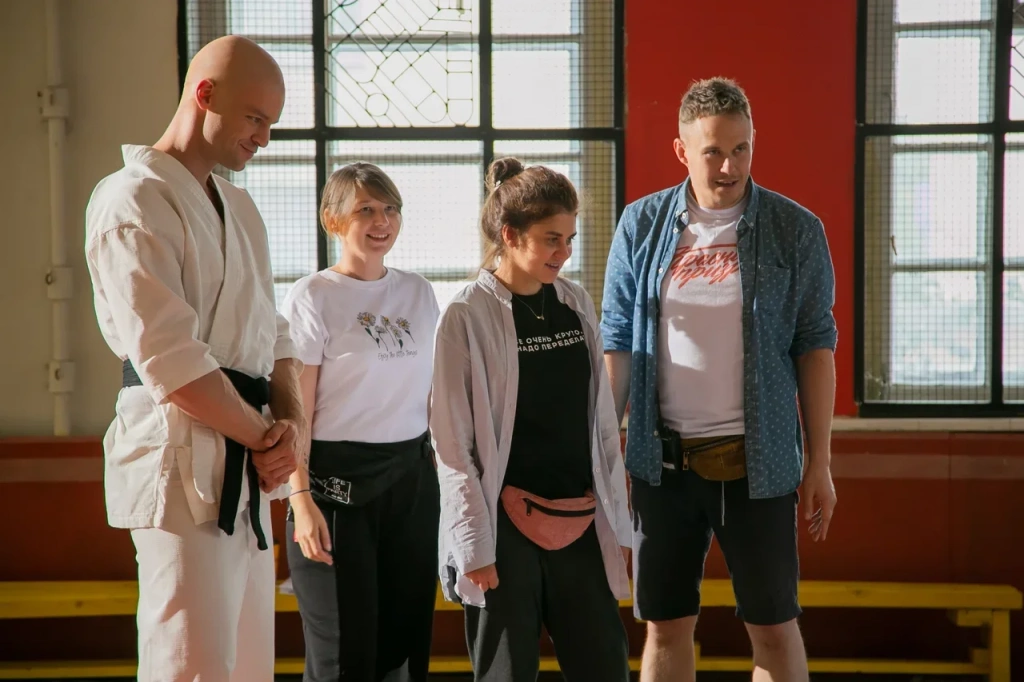 За месяц перед съемками все актеры проходили усиленные тренировки. Организация «Альфа будо» предоставила нам для этого специальный зал, за что им огромное спасибо.