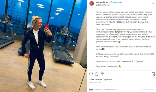 «Ну и так же вопросы по алиментам у вас. А тут похвастаться нечем. К сожалению, совесть мучает только тех, у кого она есть. У кого ее нет — живут спокойно!» — написала Малькова.