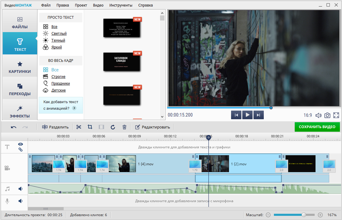 Этот редактор также сгодится для создания короткометражек. Если вы не готовы тратить деньги на Premiere Pro или VEGAS Pro, это не значит, что нужно довольствоваться минимальным набором функций. ВидеоМОНТАЖ содержит полезные инструменты вроде хромакея или изменения скорости, позволяет сделать качественную цветокоррекцию. Используйте их по полной!