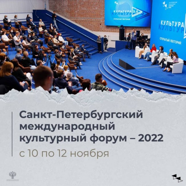 С 10 по 12 ноября в северной столице пройдет Санкт-Петербургский международный культурный форум. Об этом сообщает ТАСС со ссылкой на телеграмм-канал министра культуры Ольги Любимовой.