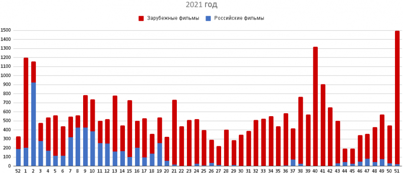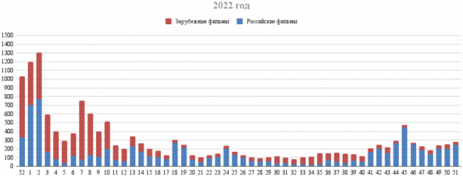По подсчетам редакции ПрофиСинема с 23 декабря 2021 года по 22 декабря 2022 года в отечественных кинотеатрах вышло 562 российских и зарубежных фильма без учета сборников короткого метра; показанных на большом экране балетных и театральных постановок, концертов и опер; вышедших в повторный прокат классических лент, а также релизов с росписью менее 10 площадок. Их общая касса составила 21,3 млрд рублей.
