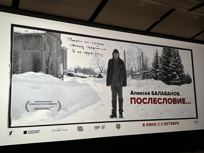 Завершилась презентация показом документальной ленты «Алексей Балабанов. Послесловие…» Константина Смилги. В этот фильм-повесть вошли одна из последних бесед с популярным режиссером, отрывки из печатных интервью разных лет и личных дневников Балабанова. Случайно записанный на камеру разговор дает уникальную возможность по-другому взглянуть на создателя легендарного «Брата». Фильмы выйдет в прокат 5 октября.