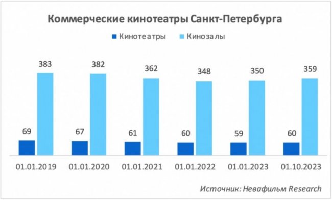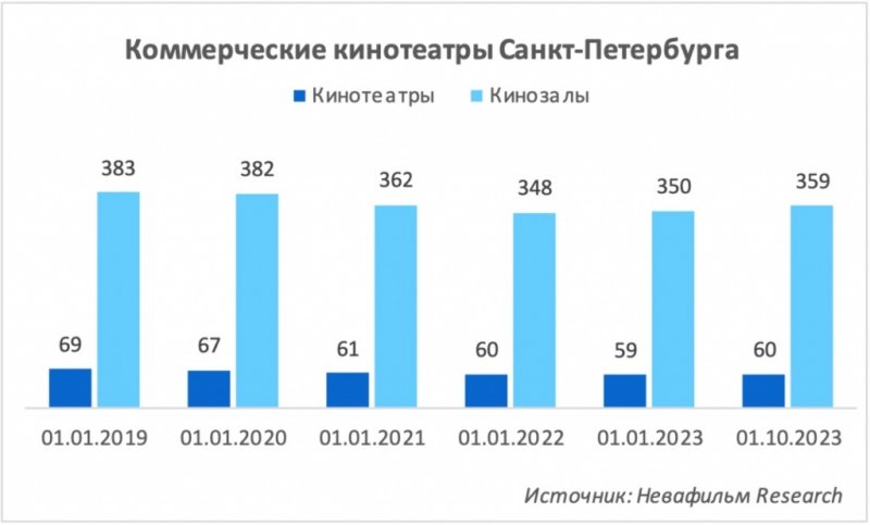 По Санкт-Петербургу за этот период закрытий не было. А цифры даже выросли: с 59 кинотеатров и 350 залов на начало года до 60 кинотеатров и 359 залов на 1 октября.