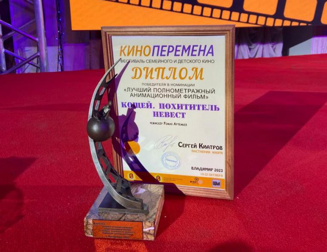 22 октября завершил свою работу Первый Всероссийский фестиваль детского и семейного кино Киноперемена, который проходил во Владимирской области. Лучшим полнометражным анимационным фильмом был признана работа режиссера Романа Артемьева «Кощей. Похититель невест» студии КиноАтис.