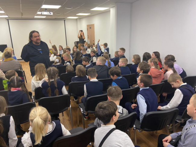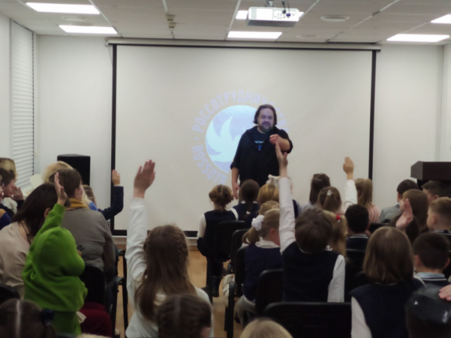 После рассказа интересных фактов о Вселенной и о работе над анимационным сериалом про первых покорителей космического пространства, режиссер показал маленьким участникам встречи 8 новых серий «Тайн космоса». А после просмотра дети в течение получаса задавали интересующие их вопросы.