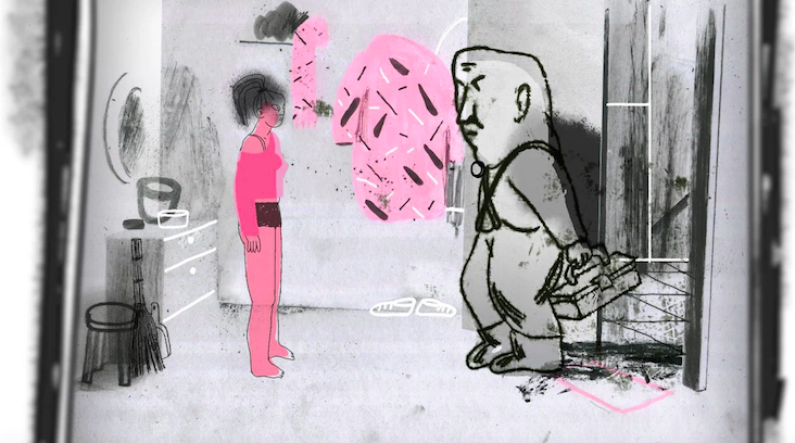 Мой графический язык сложился уже давно, и на риск и импровизацию в отношении художественного решения мне было легко пойти. Именно поэтому я решила совместить разные техники – например, применить диатипию, о которой я говорила – когда масляная краска раскатывается на стекле, а затем переносится на лист бумаги. Чтобы оптимизировать и сократить время производства я использовала также свои заранее снятые видеоролики – рисовала сразу поверх видеоматериала – и работала над анимацией в TVPaint.