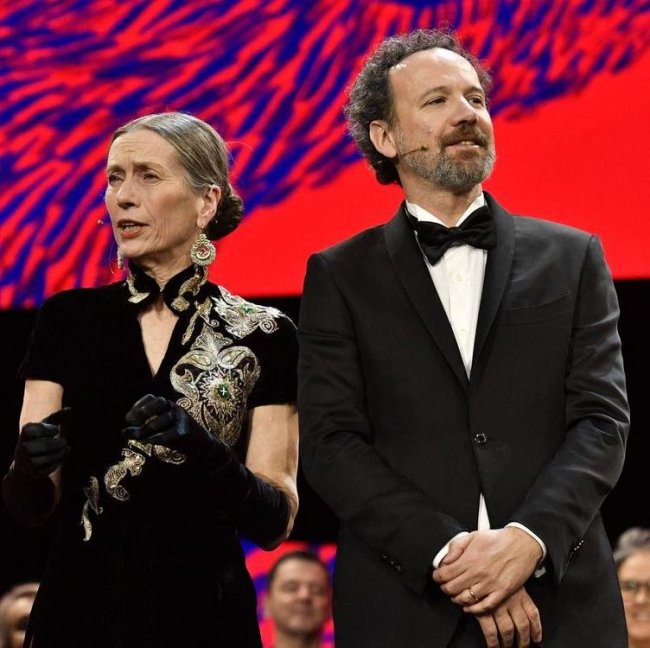 Наконец, Мати Диоп, создательница фильма-победителя Берлинале «Дагомея» / «Dahomey», также высказалась в поддержку Палестины, но как-то очень коротко и невнятно. Некоторые члены жюри прикололи к одежде таблички «прекратить огонь немедленно».