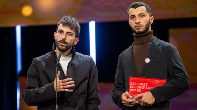 Награду лучшему документальному фильму вручили «No Other Land» / «Нет другой земли» израильтянина Юваля Абрахама и палестинца Базеля Адры. Это кино об активистах Палестины и Израиля, которые пытаются противостоять политике властей. Адра призвал прекратить поставки оружия в Израиль, а Абрахам говорил об апартеиде.