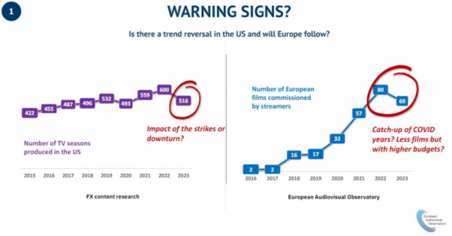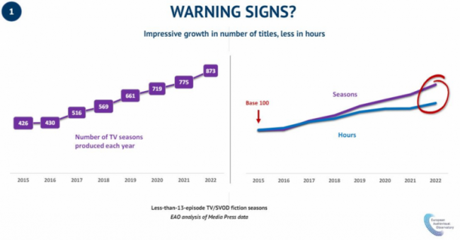 Как пишет Variety, Жиль Фонтен, руководитель отдела рыночной информации EAO, заявил, что появились признаки тенденции к снижению количества производимых сезонов сначала в США, а теперь, возможно, и в Европе.