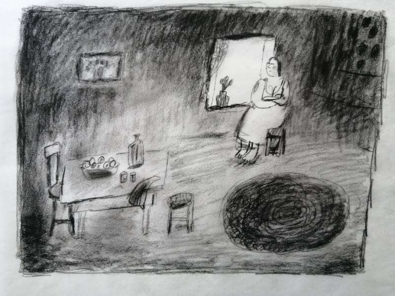 Так, например, в «Дылде» изначальные эскизы были цветные. А когда я начала работу над картиной, то делала много карандашных набросков, и это привело меня к решению прийти к упрощенной графике, а цвет использовать только в отдельных сценах для эмоционального восприятия. В какой-то момент я поняла, что мне важно просто получать невероятное удовольствие от самой работы, что именно сам процесс и есть увлекательное путешествие. Именно он должен нравиться автору. Цвета появляются только в момент, когда сама принцесса находит свое призвание и принимает себя, а другие герои попадают в цирк, где будто бы другой мир.