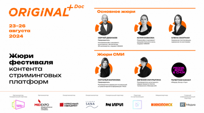 Второй фестиваль документального кино ORIGINAL+Doc состоится с 23 по 26 августа. Фестиваль пройдет в рамках Московской международной недели кино в Музее Москвы (Зубовский бульвар, 2), в кинотеатре и во дворе одновременно.