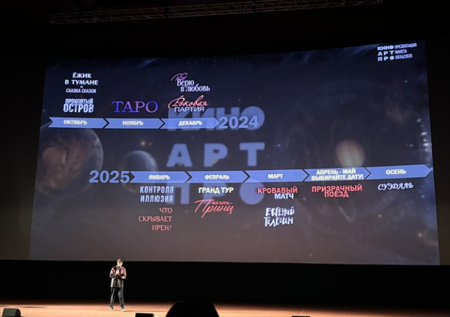 15 октября в 1 зале КАРО Октябрь прошла презентация пакета фильмов на 2024/2025 год кинопрокатной компании Кино.Арт.Про. Мероприятие приурочили к двухлетию с основания дистрибьютора. Фильмы были разделены на несколько блоков: мистика, русское кино, любовь и корейский кинематограф. Всего прокатчик показал 12 проектов, среди которых были как хорроры и жанровое кино, так и участники престижных кинофестивалей.