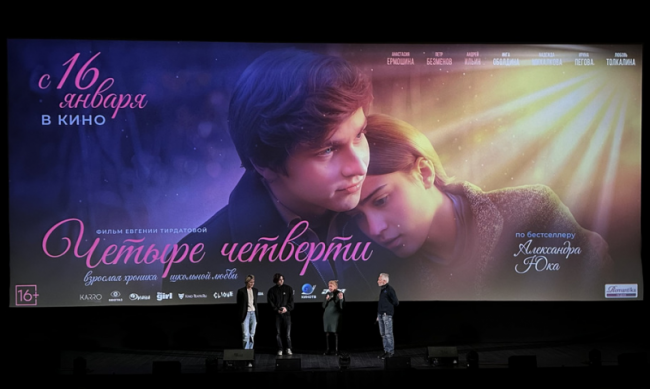 Вторым проектом презентации стала мелодрама Евгении Тирдатовой «Четыре четверти» — романтической истории о старшеклассниках. Картина основана на одноименной популярной книге Александра Юка, у которой было семь переизданий, а два последних вышли с героями фильма на обложке. Премьера ленты прошла во внеконкурсной программе 46 ММКФ. Авторы сообщили, что «Четыре четверти» должна продолжить традиции такого отечественного школьного кино, как «Школьный вальс» и «Вам и не снилось..».