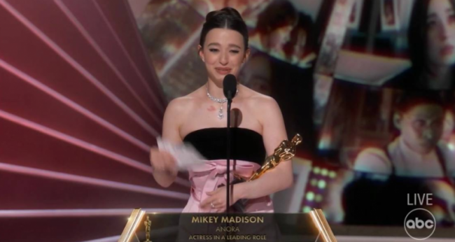 Ведущий – комик Конан О'Брайен – шутил очень осторожно: то про наряды звезд, то про неподобающее время для церемонии («Да я только что позавтракал и вот – пора на бранч!») и про отказ организаторов от использования искусственного интеллекта при создании шоу. Ближе к концу вечера в его речи – во время представления «Аноры» – проскользнула под неодобрительные возгласы довольно опасная шутка про отношения американцев с «влиятельными русскими», а Дональд Трамп – к удивлению – остался в этот раз незамеченным, в отличие от других церемоний.
