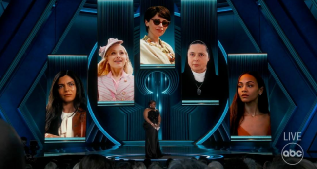 Оскар за Лучшую женскую роль второго плана получила Зои Салдана за роль адвоката, который помогает лидеру картеля пройти операцию по смене пола, в «Эмилии Перес». В своей речи актриса отметила, что она «первая американка доминиканского происхождения, получившая Оскар, уверена, что не последняя».