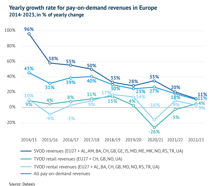 Доходы от SVOD по-прежнему остаются драйвером роста аудиовизуального рынка в Европе