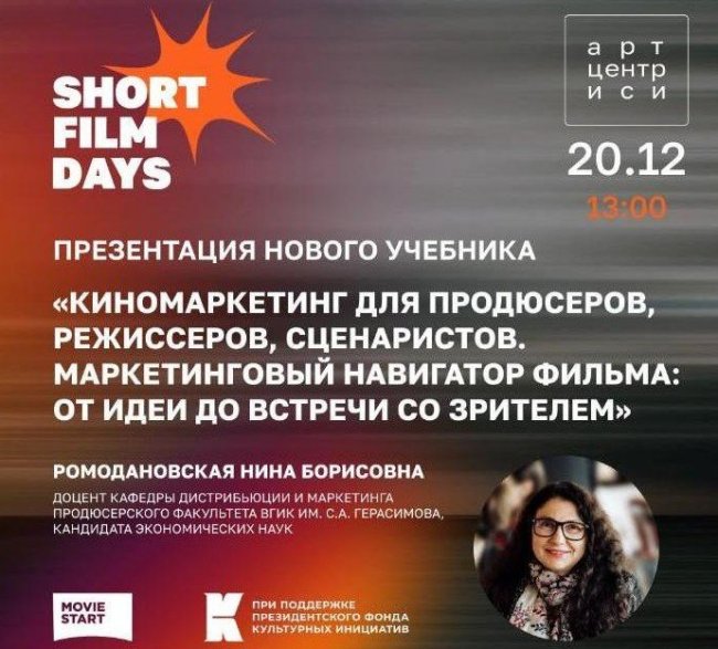 19 и 20 декабря состоятся две публичные презентации нового учебника Нины Ромодановской «Киномаркетинг для продюсеров, режиссёров, сценаристов. Маркетинговый навигатор фильма: от идеи до встречи со зрителем».
