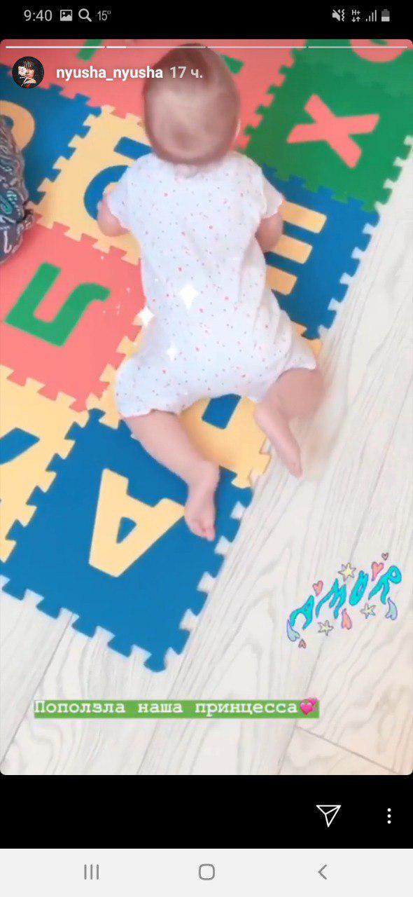 28-летняя Нюша в Stories поделилась первыми успехами своей шестимесячной дочки. Последние кадры с малышкой исполнительница публиковала еще в феврале, показывая подписчикам крохотные пяточки ребенка. Впервые за три месяца новоиспеченная мамочка разместила свежую публикацию с дочкой. Девочка учится ползать на детском коврике и уверенно держит головку.